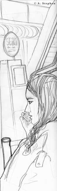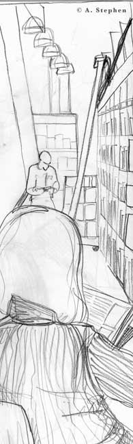 I’m posting some recent sketches I did in the inspiring “Drawing NYC” class I’m taking with John Ruggeri. We meet every Tuesday in a new spot: these sketches are from a session last Tuesday in the Union Square Barnes and Noble.